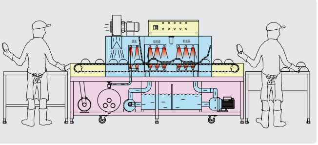 2、獨特的傳送網(wǎng)帶:清洗傳送帶網(wǎng)格孔徑較大,沖洗效果好,且不容易沾粘餐具殘留物,可單獨拆卸更換,維修簡單方便;傳送帶上有軟壓帶,沖洗時可加大水壓,沖洗更干凈,并可防止餐具因沖力大而跳躍,避免餐具損壞,餐具口朝下擺放,餐具不會積攢殘留液體,保證餐具潔凈光亮。